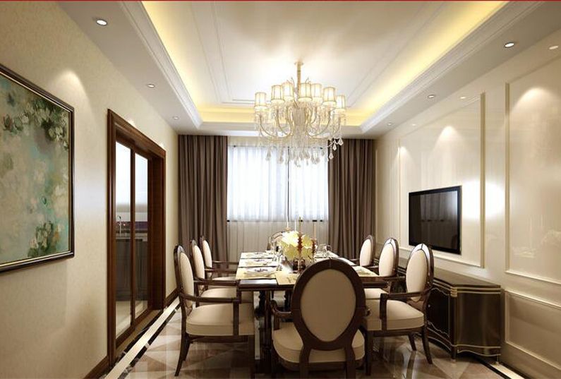 餐廳歐式家具選用,歐式餐桌和歐式餐邊柜使用歐式元素這一風(fēng)格得以延續(xù),淺色色的坐椅潔凈,舒適。墻面上的歐式畫和歐式墻板設(shè)計風(fēng)格韻味。