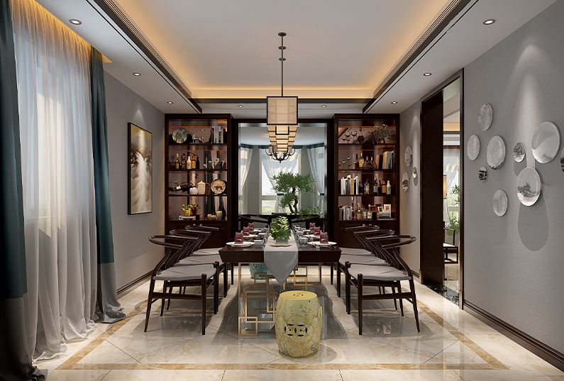 本案是為一家四口之家打造的宜居式生活住宅,男女主人本身經(jīng)營家具品牌--康耐登,所以結(jié)合自家家具配以強(qiáng)大的生活功能打造極致的視覺體驗(yàn),保守的文人氣息結(jié)合現(xiàn)代的時(shí)尚活躍體現(xiàn)“新”中式韻味。柔和的木色,給予人溫馨、舒適、精致的感受;客廳以大面積的藍(lán)灰色作為基調(diào),營造了一個(gè)素雅簡練而又純凈的空間,給予人更多的安寧與平靜;雅,這種回歸自然的質(zhì)樸恰恰給人一種貼心的舒適,可以很快地投入到空間的氛圍當(dāng)中,放松自我。