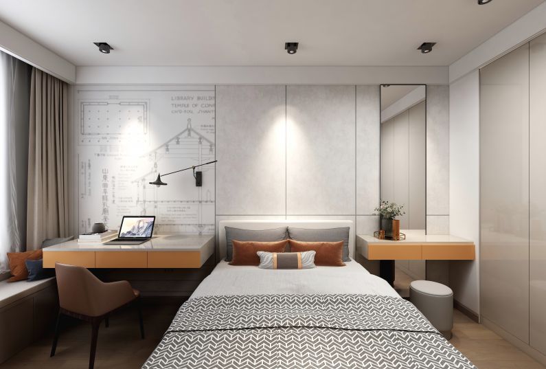 本案設(shè)計的是一個三室二廳兩衛(wèi)的住宅,面積為120㎡,兩個大人帶1個孩子居住,考慮客人偶爾來小住且沒有客房,利用餐廳空間改出來一間客房;原始進入主臥需要經(jīng)過書房,把次臥和書房位置互換,兩個臥室都在陽面,隔出獨立書房加客房,進門鞋帽柜不夠用,巧用儲物間掛衣和放鞋,以簡約風(fēng)格定位進行設(shè)計,突出溫馨且不失時尚之感?;疑档牟妓嚿嘲l(fā)搭配主體空間帶來輕柔的體驗,愈加的溫暖舒適,顏色的冷暖交替,帶來空間的淡雅溫潤之氣,靜雅時尚。