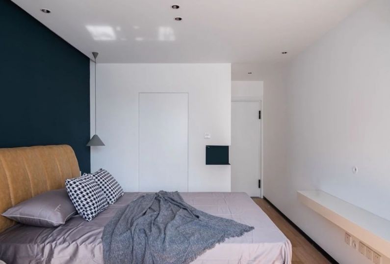 總體說明:采用了現(xiàn)代簡約的風(fēng)格,有別于以往的極簡元素,在色彩方面著重的增加了氛圍色,呈現(xiàn)出的效果非常有質(zhì)感??蛷d:整個(gè)客廳沙發(fā)的背景色我們運(yùn)用了深藍(lán)色來突出空間感,同時(shí)利用不同的燈光增加客廳的氛圍主臥:用純白色的隱形門,保留門洞的線條感,同時(shí)在衣帽間的墻體轉(zhuǎn)彎處,我們也有自己的小心思,利用凹進(jìn)去一點(diǎn)空房間,刷藍(lán)色來增加細(xì)節(jié)感次臥:簡約風(fēng)裝飾畫,不規(guī)則淺灰床頭桌,將長輩房間打造的素凈雅致,床頭小壁燈也為房間傳送了一份暖意餐廳:餐廳餐桌我們選用的是白色的巖板桌,與鞋柜形成的小島臺(tái)完美的結(jié)合在一起,利用極簡的細(xì)長條燈來襯托。晚上燈光打開的時(shí)候別有一番滋味衛(wèi)生間:衛(wèi)生間增加通體的梳妝鏡,來延伸空間。 很高興能讓我們在這個(gè)城市相遇