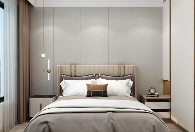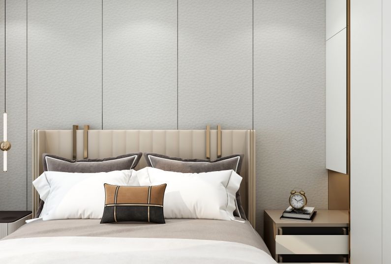 臥室的床上裝飾以舒適為主,以簡約的配飾,凸顯室內(nèi)輕奢的柔美。以人為中心,將軟裝元素與空間自然細(xì)膩的嵌入在一起,實(shí)現(xiàn)設(shè)計(jì)對體驗(yàn)的提升。