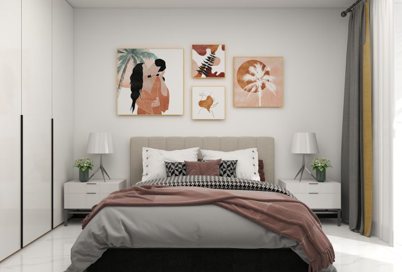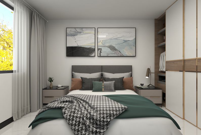 主臥空間是居家私密的空間,主臥設(shè)計(jì)的主要以舒適溫馨為主,臥室通鋪白色大地磚,衣柜采用木制線條,用造型突出家具的色彩。