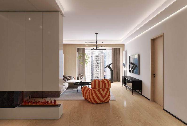 空間以木色為主色調(diào)、點(diǎn)綴黑色,增加空間的層次感。簡(jiǎn)約的造型設(shè)計(jì),搭配舒適的家具,呈現(xiàn)出簡(jiǎn)潔明快自然的居住空間。