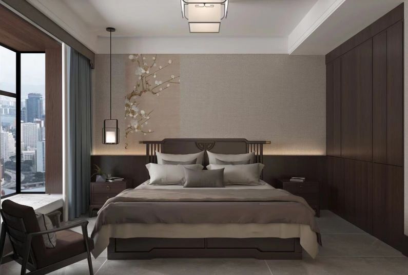 設計思路:本案在色彩和材質上選擇較為素雅,透過“意”的打造,將浸透東方的那種對于含蓄而深遠的美感中汲取,凸顯鮮明的國際東方美學特點。展示“虛”與“實”的有機配合,虛實相生成為意境獨特的構成方式,化繁為簡、返本歸元,極簡的線條加上中式美學的對稱之美,讓空間更空靈純凈。