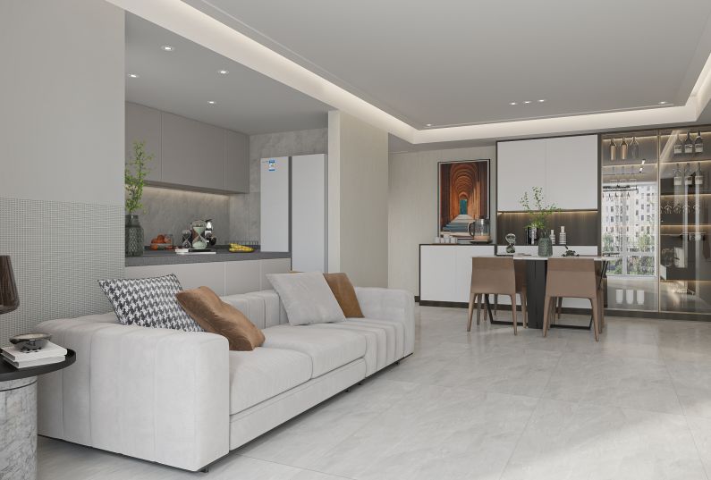 客廳、餐廳及廚房的墻體改造,整體空間設(shè)計(jì)彰顯效果空間比較寬裕。墻整體調(diào)整為開(kāi)放式西廚,讓采光、通風(fēng)、視覺(jué)效果提高。中廚區(qū)域放置陽(yáng)臺(tái),避免后期油煙及味道影響居住環(huán)境。餐廳設(shè)計(jì)酒柜、水吧,保證儲(chǔ)物及餐廳實(shí)用性。