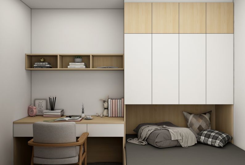 設(shè)計主題:地面采用通鋪地板的形式,整體色彩為低飽和度色系搭配,局部跳色點(diǎn)綴,運(yùn)用玻璃的材質(zhì)使空間更活潑一些,簡約而不簡單的搭配體現(xiàn)出北歐的氣質(zhì)。