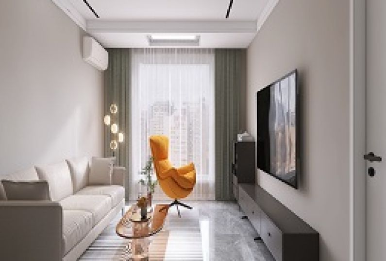 客廳采用無主燈設(shè)計,使光更有氛圍感。 客廳:無主燈設(shè)計增加氛圍感,電動晾衣架放藏在吊頂立,整齊,美觀。