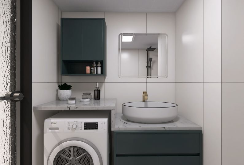 廚房:廚房采用封閉式,整體灰色系搭配,地磚與客餐廳通鋪,彰顯廚房最貴感。