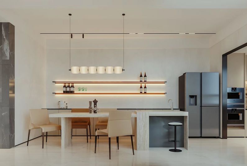 餐廳:取其精髓,奢華貴氣。與端莊秀麗相結(jié)合,打造輕奢主義風格,不限制于任何裝修元素與色彩