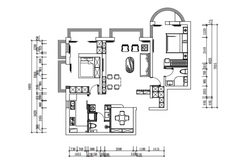 個(gè)臥室1個(gè)客廳2個(gè)衛(wèi)生間1個(gè)書(shū)房