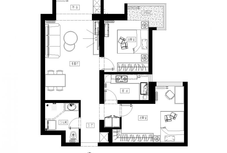 主臥室:灰色地磚配以白色的墻面。家居以灰色和白色為主,加上線條簡潔的裝飾收納柜。讓整體空間簡約為主用不同質(zhì)感的材質(zhì)使整個空間更加豐富。