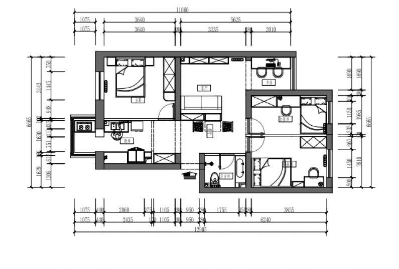 設(shè)計(jì)思路:業(yè)主一家四口,一兒一女,通過(guò)功能的整合和分區(qū),提高了空間的功能性和舒適度,對(duì)于小戶(hù)型來(lái)說(shuō)功能是重中之重。