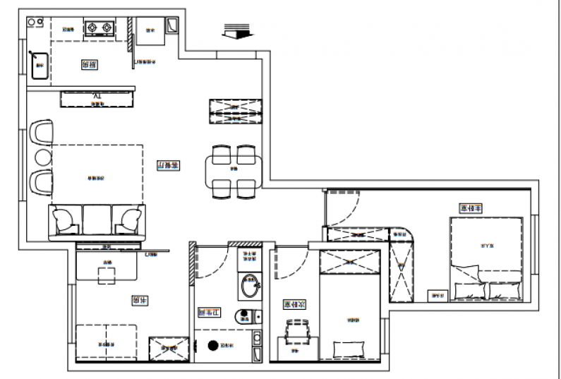 廚房,并沒有因?yàn)閴w的改動(dòng)而影響廚房的收納空間,廚房門位置的改動(dòng)更好的利用了內(nèi)外空間。