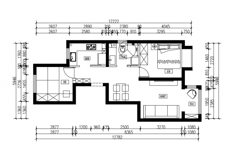 衛(wèi)生間:以簡約實(shí)用為主,設(shè)計(jì)干濕分離,增加衛(wèi)生間空間功能。