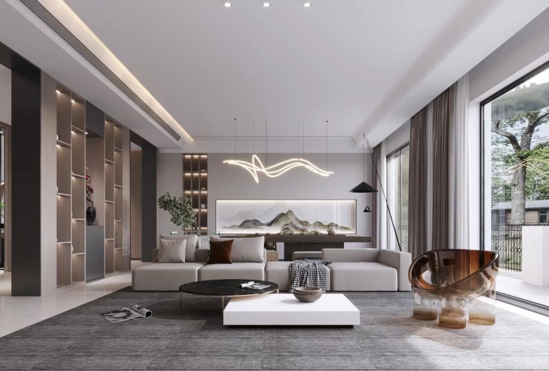 客廳茶室的設(shè)計依然去掉了過多煩躁的屬性,壁龕賦予了中國上水畫的格調(diào)與靠山的寓意