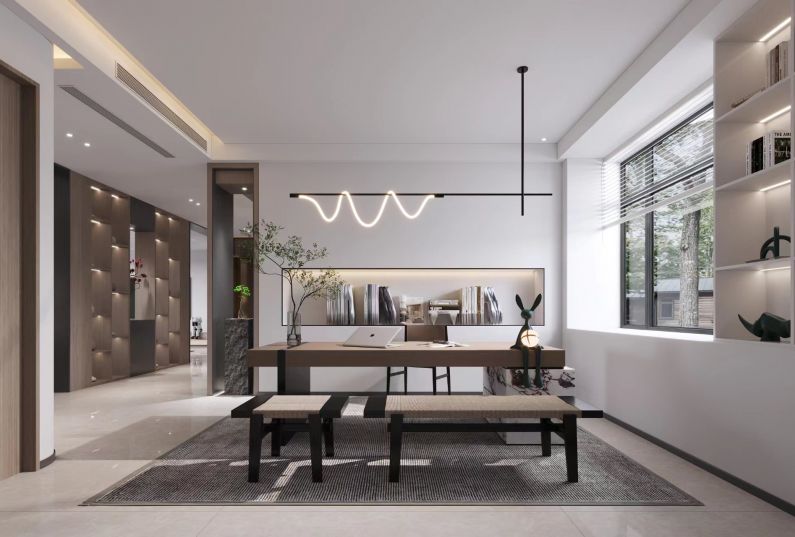 書房取代了原有餐廳的位置,讓業(yè)主享受陽光與雅致生活的擁抱