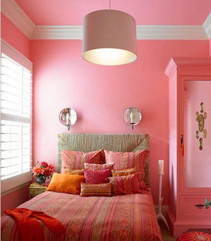 說是粉色,卻也接近玫紅。簡單的紅色墻面搭配白色軟裝室內視覺感甚為清爽,這間閨房跟前面很多不同,一點深藍的點綴讓房間多了一份沉穩(wěn)的氣韻。